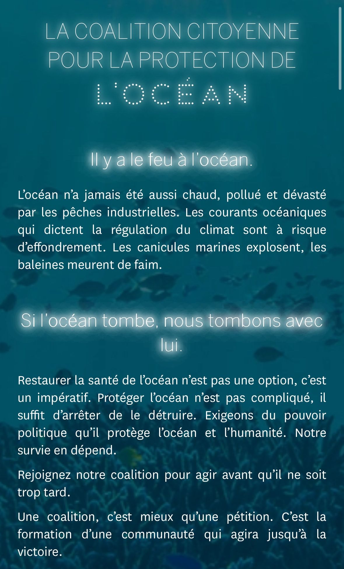 Restaurer la santé de l’océan n’est pas une option, c’est un impératif. Protéger l’océan n’est pas compliqué, il suffit d’arrêter de le détruire. Exigeons du pouvoir politique qu’il protège l’océan et l’humanité. Notre survie en dépend. 🌊
